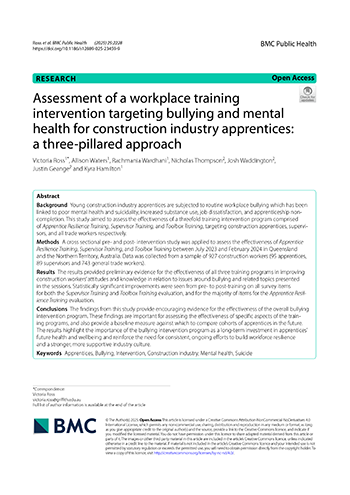 Assessment of a workplace training intervention targeting bullying and mental health for construction industry apprentices: a three-pillared approach